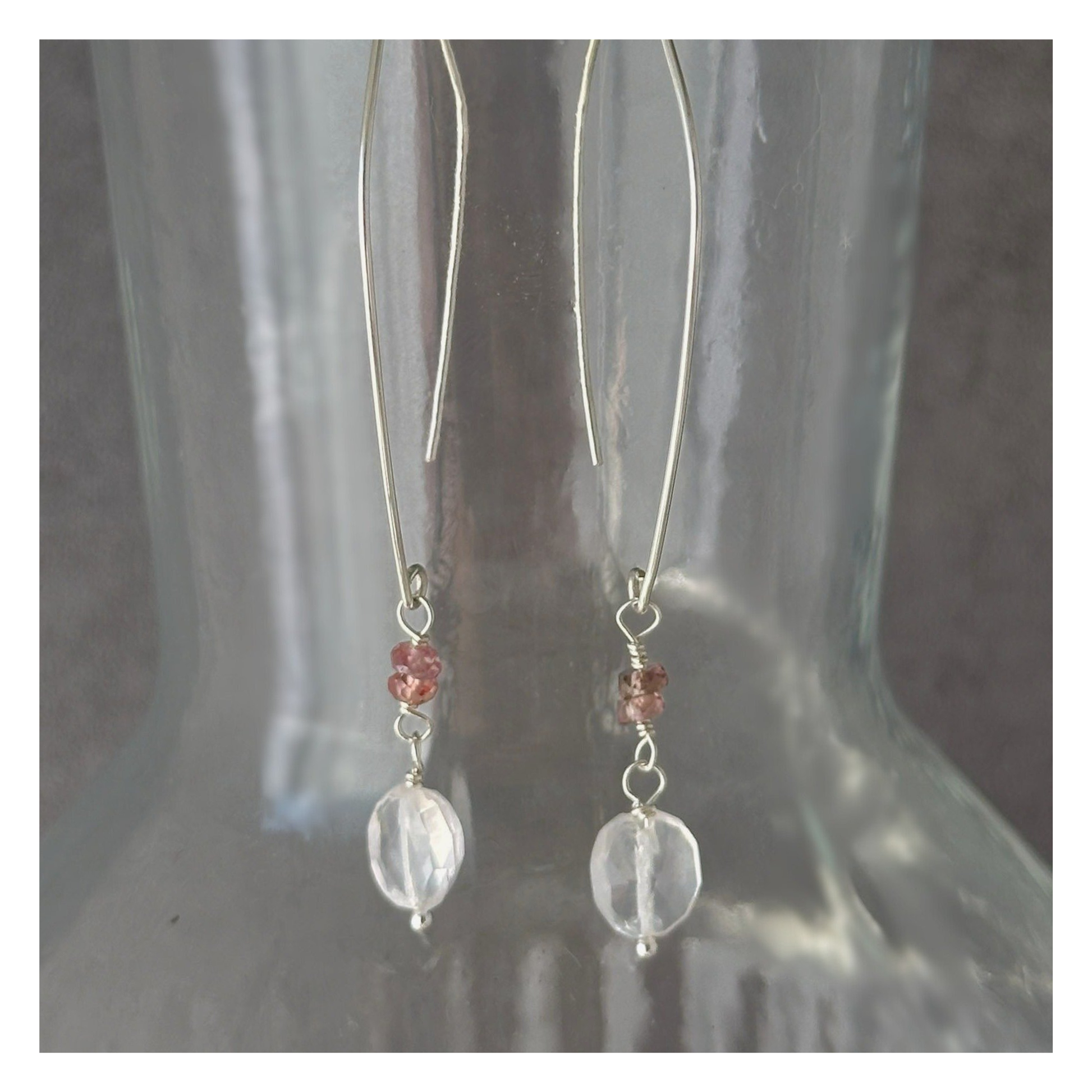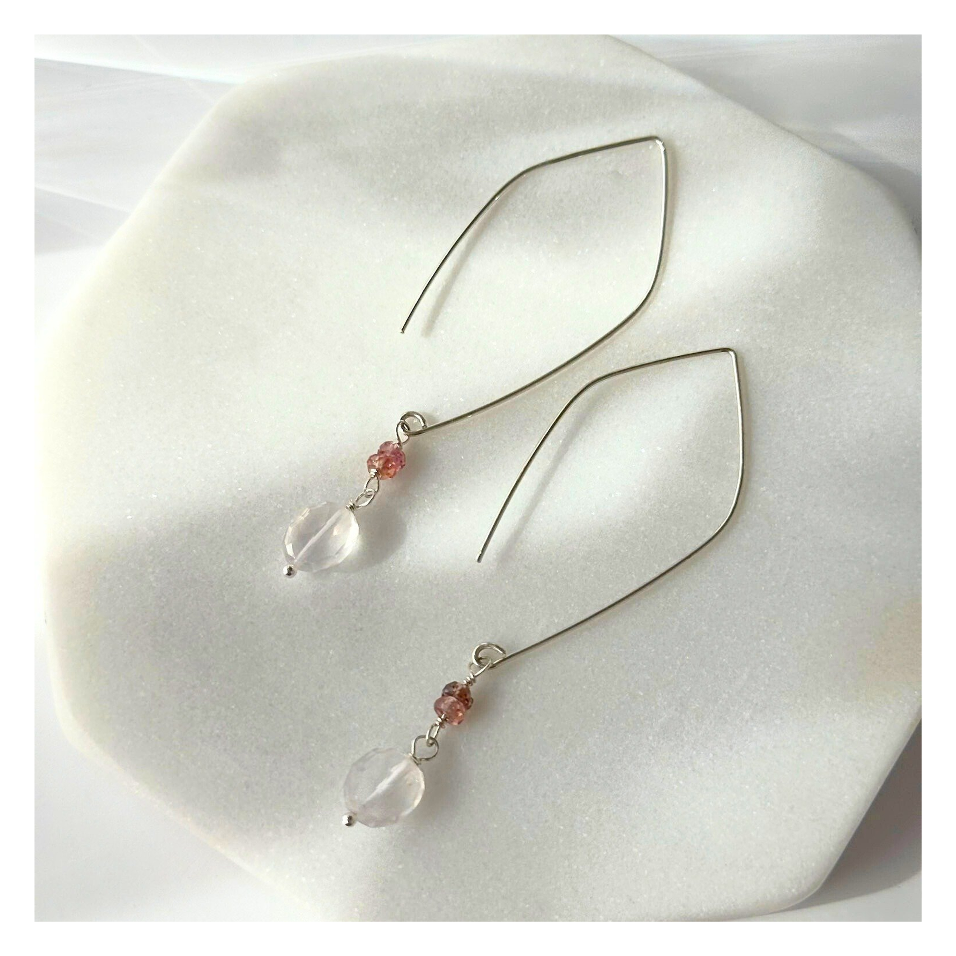 Soft rose quartz gemstones linked with luminous lavender sapphires, suspended from my signature handmade sterling silver stained-glass curved earring hooks.
