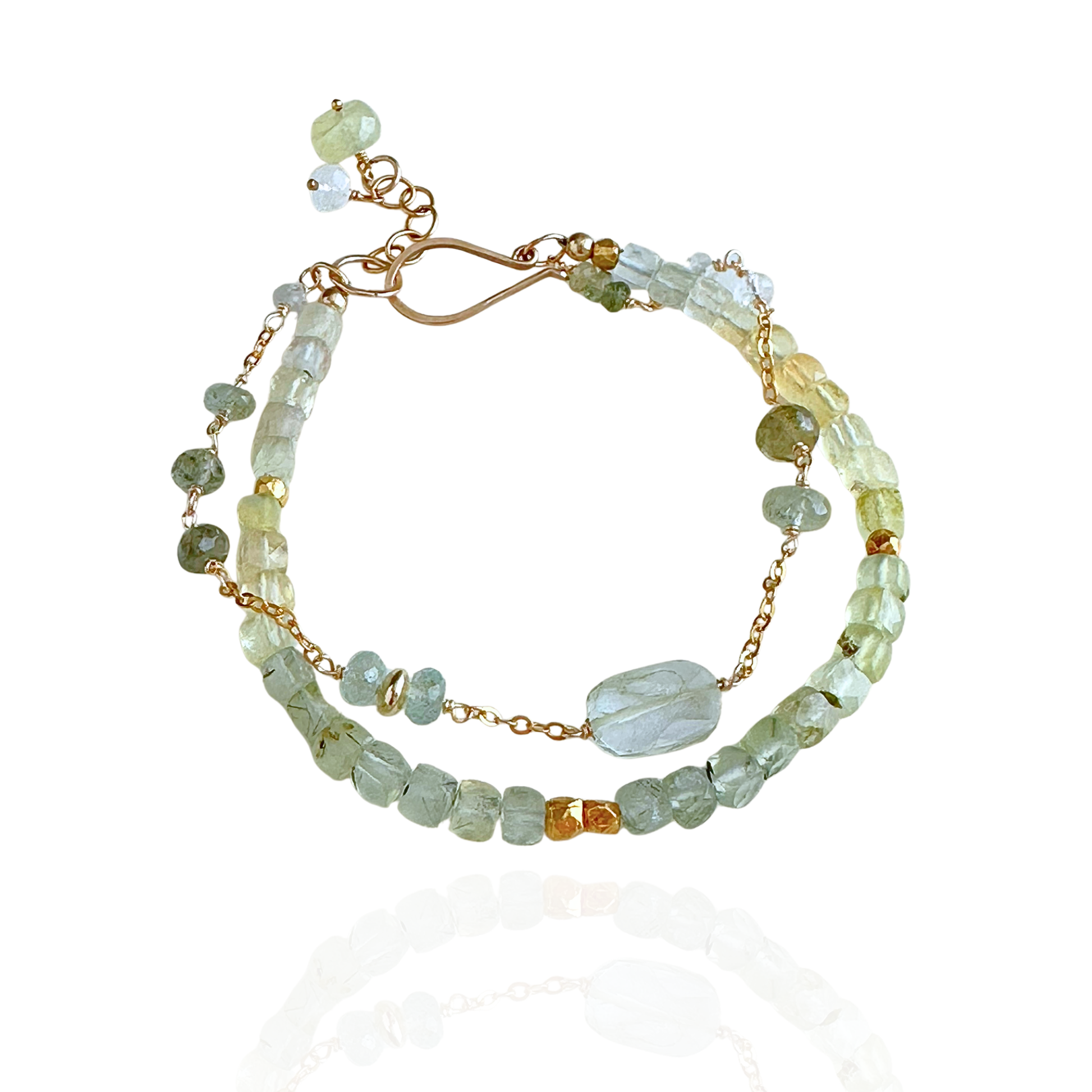 Light & Balance – Moss Aquamarine & Prehnite Gold-Filled Bracelet