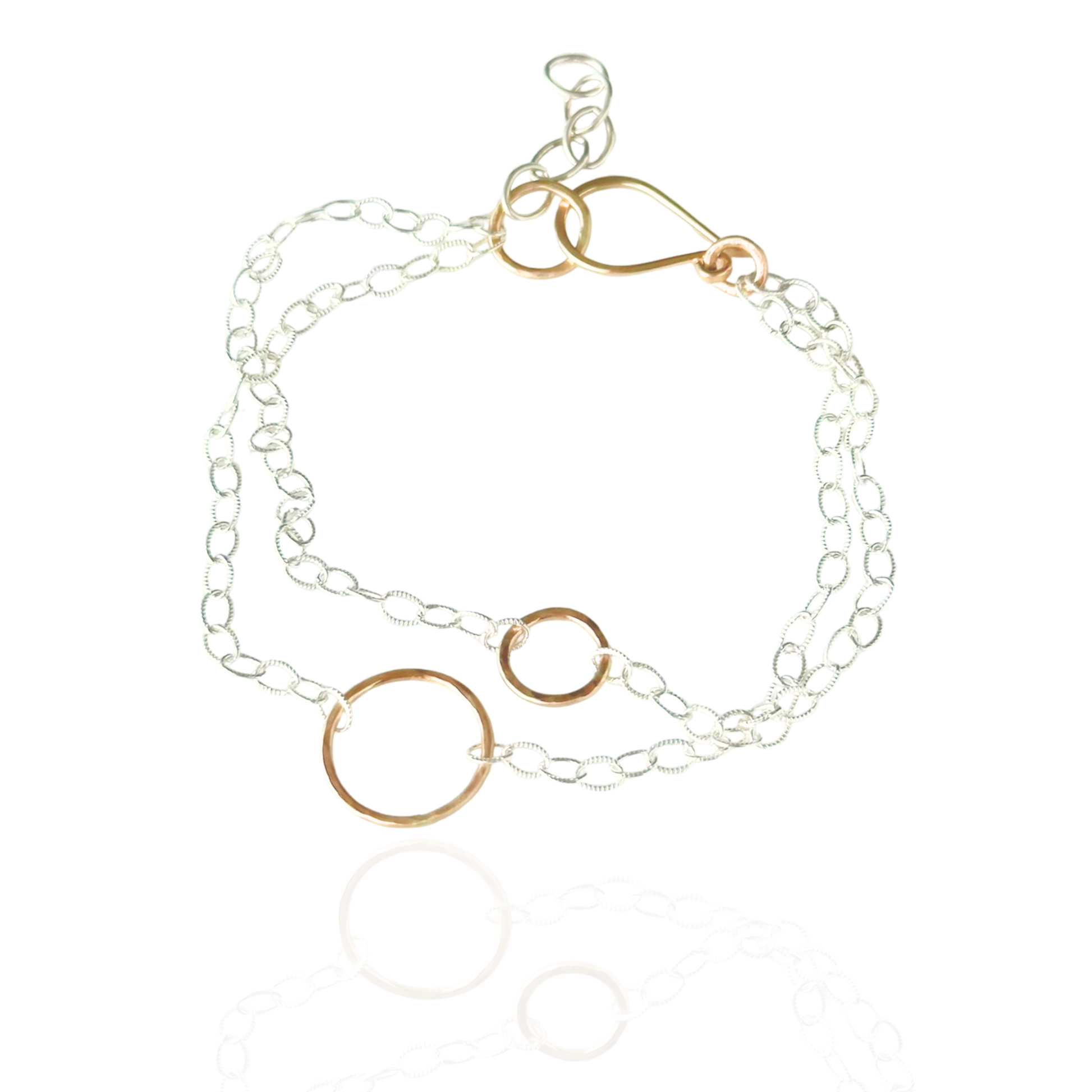 Connected to You — Double Sterling Silver Chain & Gold Hoops Bracelet